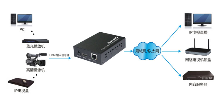 • 工业级 HDMI H.2641080p IP TV编码器 HE01